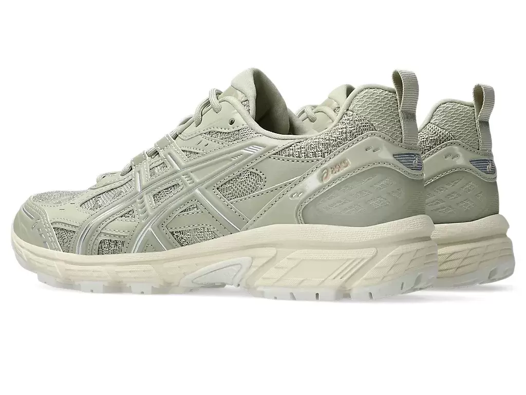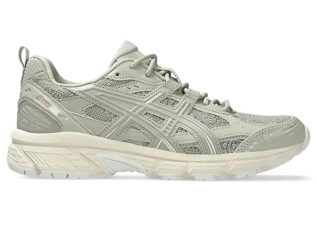 Αυτά τα παπούτσια παραπέμπουν σε σχεδιαστικά στοιχεία από τα GEL-KAHANA® 3 και GEL-TARGET για την κατασκευή του άνω μέρους. Τα συνθετικά ματ και ημι-γυαλιστερά στρώματά του συνδέονται με τις τραχιές και άγονες υφές που συναντώνται στην ύπαιθρο, δημιουργώντας μια αισθητική αστικού μονοπατιού. Το παπούτσι διαθέτει επίσης διαφανή κορδόνια για μια αναβαθμισμένη εμφάνιση.