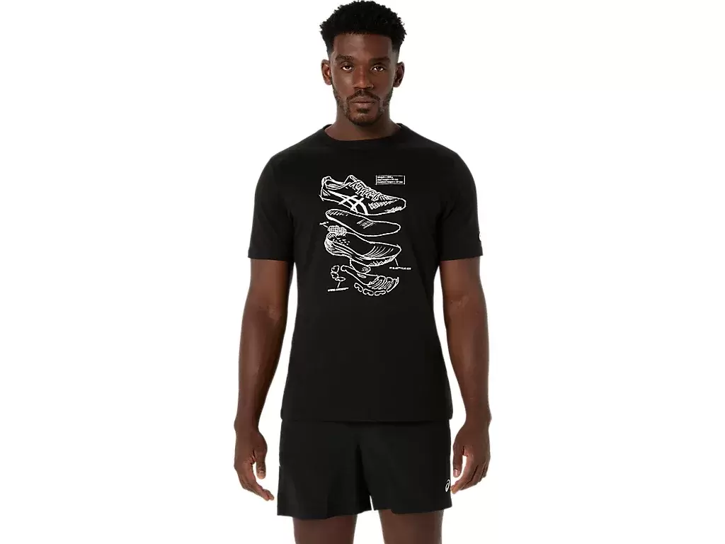 Αυτό το άνετο πλεκτό κοντομάνικο μπλουζάκι είναι εμπνευσμένο από σκίτσα παπουτσιών για τρέξιμο υψηλής απόδοσης της ASICS. Έχει σφραγισμένο μπροστινό γραφικό που απεικονίζει τα διάφορα εξαρτήματα που χρησιμοποιούνται για την κατασκευή των παπουτσιών μας.