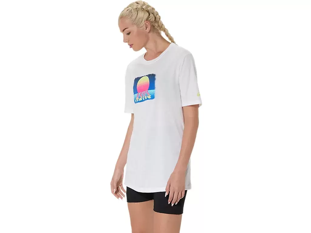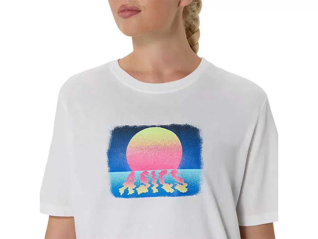 Η κοντομάνικη μπλούζα ASICS RETRO SUNSET έχει ρετρό σχέδιο ηλιοβασιλέματος.
