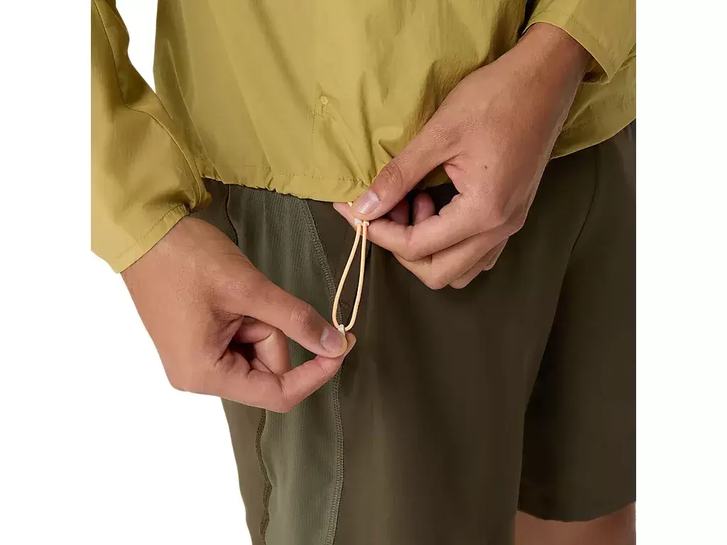 Είναι ένα ευέλικτο μπουφάν σχεδιασμένο για να προστατεύει από τη βροχή και τον άνεμο και μπορεί εύκολα να αφαιρεθεί και να τοποθετηθεί στην πλαϊνή τσέπη κατά τη διάρκεια του τρεξίματος.