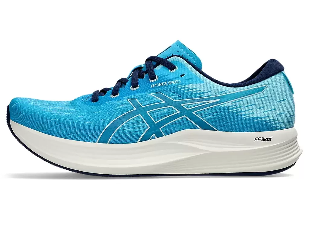 Το παπούτσι EVORIDE™ SPEED 2 είναι ένα ελαφρύ αθλητικό παπούτσι που έχει σχεδιαστεί για να παρέχει μεγαλύτερη εξοικονόμηση ενέργειας από την προηγούμενη έκδοση. Οι ενημερώσεις αυτού του αθλητικού παπουτσιού επικεντρώνονται στην ταχύτητα, την άνεση και την εφαρμογή. Η αντικραδασμική προστασία FF BLAST™ βοηθά στην προώθηση πιο απαλών προσγειώσεων και άμεσης ανάκαμψης.​ Εν τω μεταξύ, η λειτουργία 3D SPACE CONSTRUCTION™ βοηθά στη μείωση του βάρους, βελτιώνοντας παράλληλα την παραμόρφωση. Τέλος, το υλικό εξωτερικής σόλας από καουτσούκ AHAR™ προσφέρει βελτιωμένη ανθεκτικότητα σε διάφορες επιφάνειες.