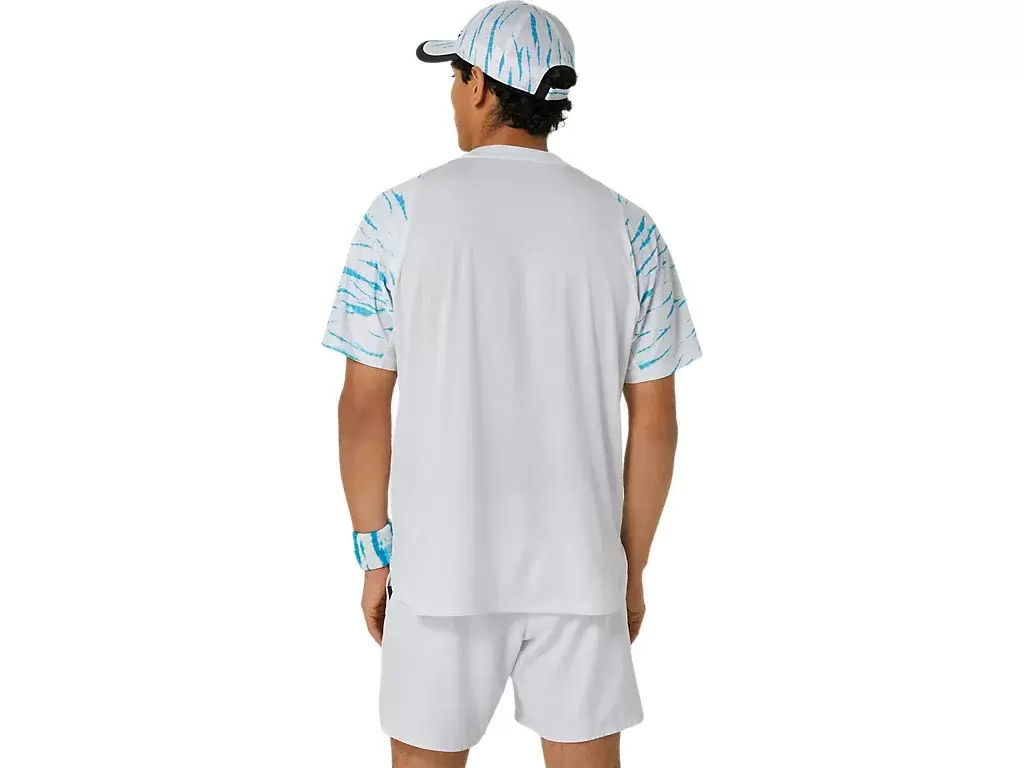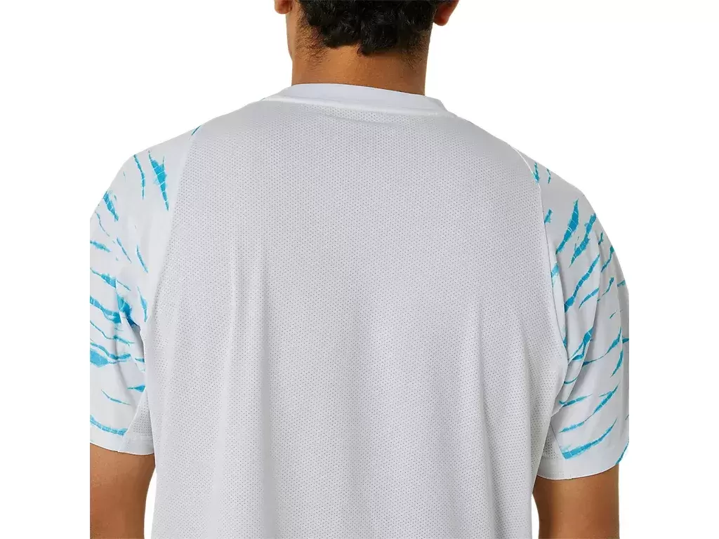 Εν τω μεταξύ, αυτό το μπλουζάκι διαθέτει γραφικό σχέδιο σε όλη την επιφάνειά του εμπνευσμένο από τα Shibori, τις παραδοσιακές ιαπωνικές τεχνικές βαφής.