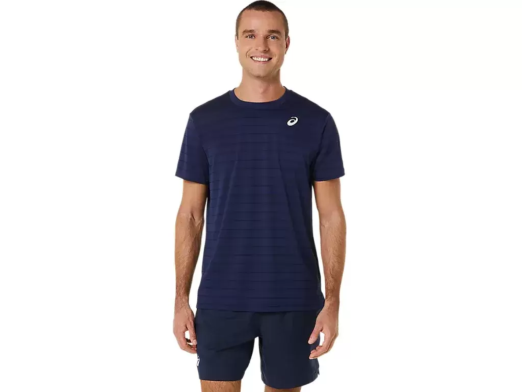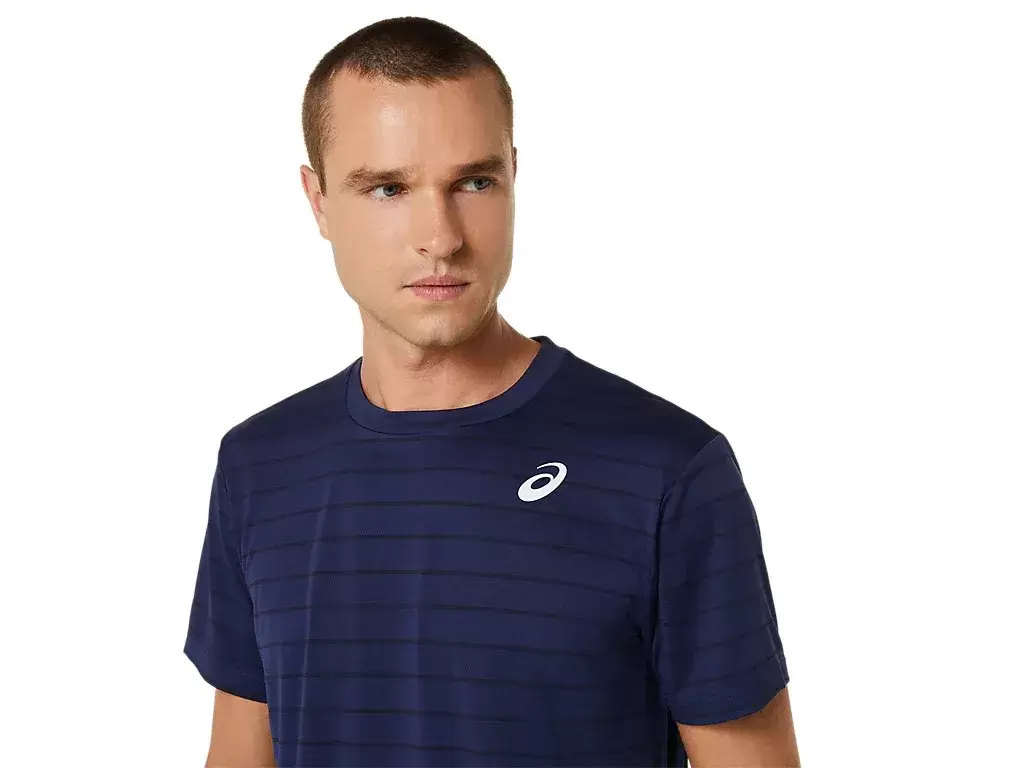 Το κοντομάνικο μπλουζάκι με ρίγες COURT έχει σχεδιαστεί με ένα διασκεδαστικό σχέδιο γηπέδου τένις στο μπροστινό μέρος.