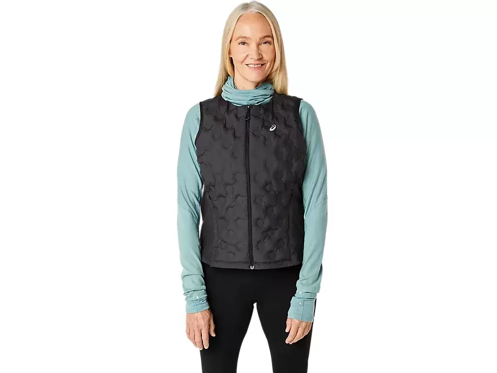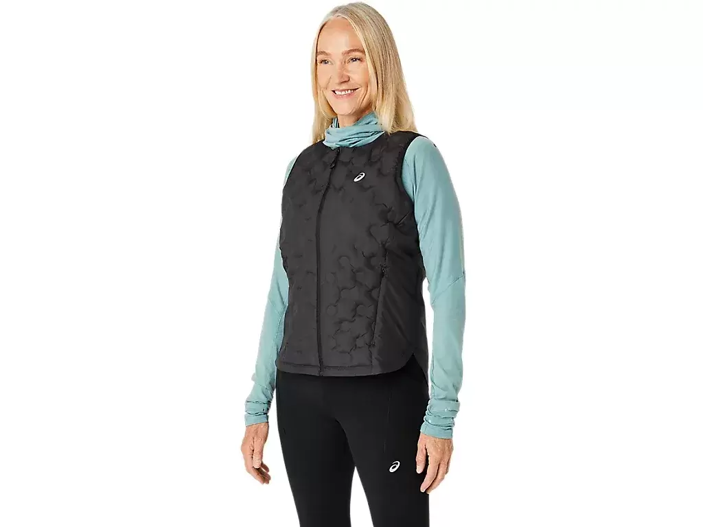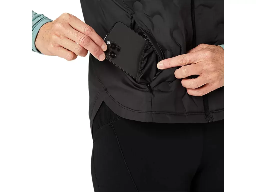 Το γιλέκο διαθέτει πλαϊνές τσέπες με φερμουάρ για πρόσθετες επιλογές αποθήκευσης κατά τη διάρκεια του τρεξίματος. Τουλάχιστον το 50% του κύριου υλικού του ενδύματος είναι κατασκευασμένο από ανακυκλωμένο πολυεστέρα για τη μείωση των αποβλήτων και των εκπομπών άνθρακα.