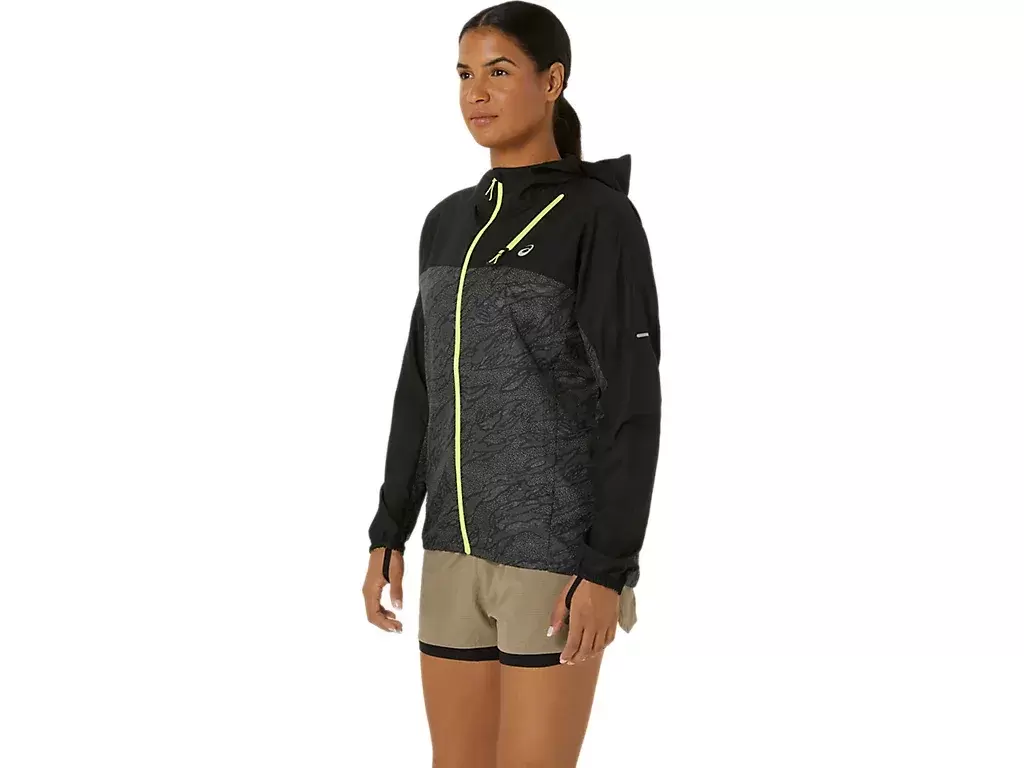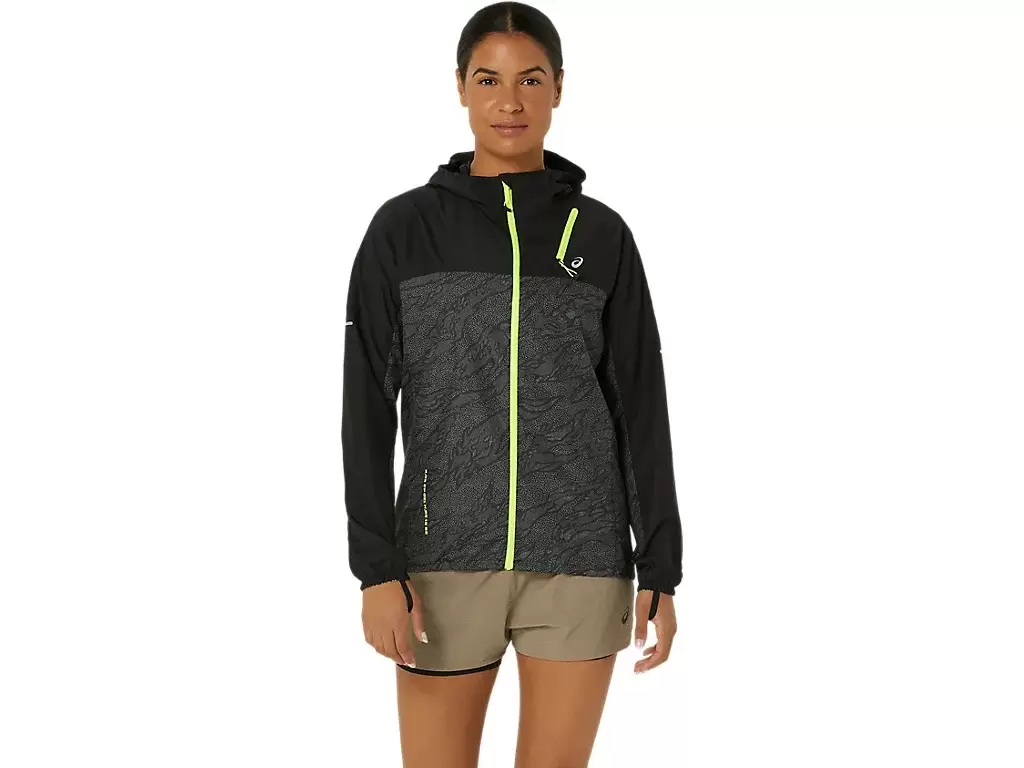 Το μπουφάν διαθέτει σχέδιο με τύπωμα σε όλη την επιφάνεια και μπορεί εύκολα να αφαιρεθεί και να τοποθετηθεί στην τσέπη στο στήθος κατά τη διάρκεια του τρεξίματος.