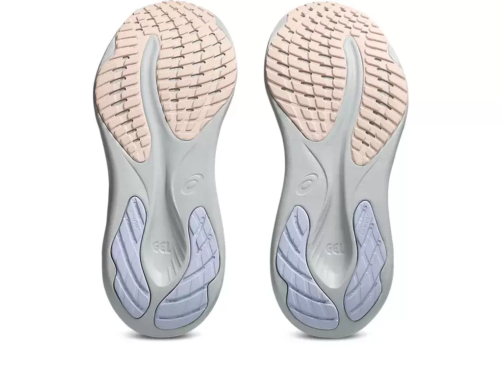 Κάτω από το πέλμα, η αντικραδασμική προστασία FLYTEFOAM® συνδυάζεται με την τεχνολογία GEL® για απαλή αίσθηση.